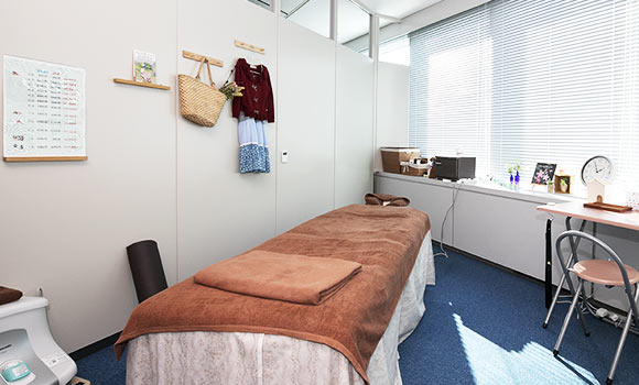 - 林﨑さん会議室フロアの一室を提供して準備を進めました。ポスターを掲示したり、社内イントラで流したり、各部署にいるワークスタイル検討委員会の委員からアピールするなどして告知に努めました。正直言うと、私自身、やってみたい気持ちはあったけれど、「本当にできるのか」、「利用者が十分集まるのか」半信半疑でした(笑)。ところが、いざフタを開けてみたら非常に好評で。男女問わず幅広い年代の社員が、ちょっとした空き時間に立ち寄ってくれました。リラクゼーションの利用がメインですが、靴磨きも好評でした。